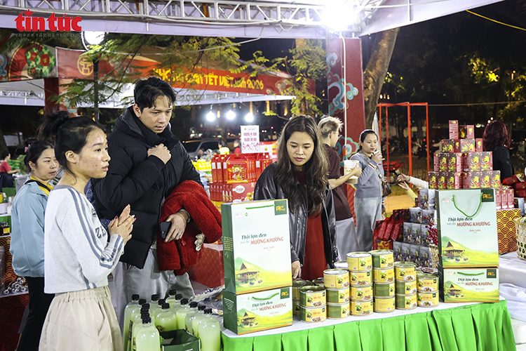 Các gian hàng giới thiệu đa dạng sản phẩm đặc trưng như nông sản Tây Bắc, hải sản Hải Phòng, chả mực Quảng Ninh, nem bùi Bắc Ninh, cơm cháy Ninh Bình, bánh chưng gù Hà Giang, giò chả Ước Lễ, cốm Hà Nội…
