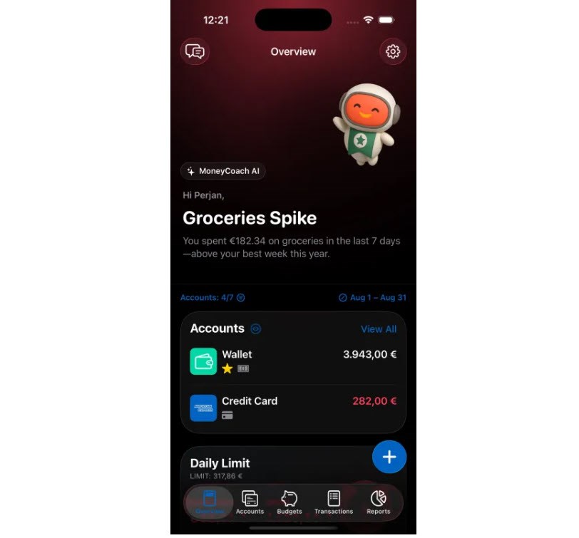 MoneyCoach: Phân tích chi tiêu, đưa ra cảnh báo và gợi ý danh mục nhập liệu nhanh chóng.