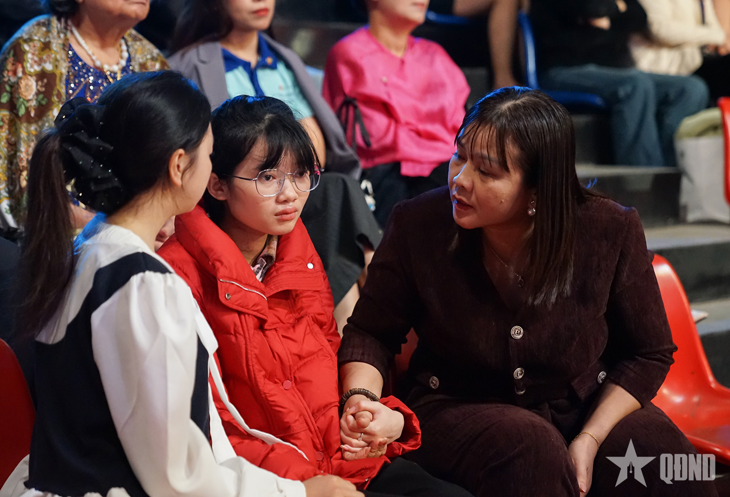 Giữa ánh sáng rực rỡ của sân khấu và hàng nghìn ánh mắt dõi theo, Nguyễn Thị Em bất chợt vòng tay ôm lấy chị Thoa, thì thầm hai tiếng giản dị: “Con yêu mẹ”.