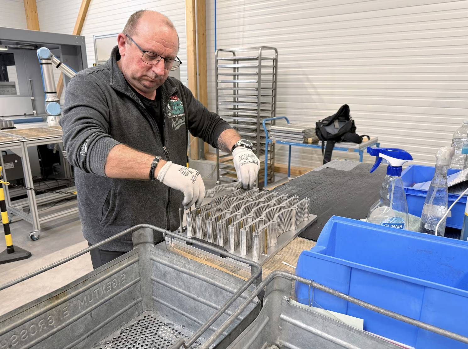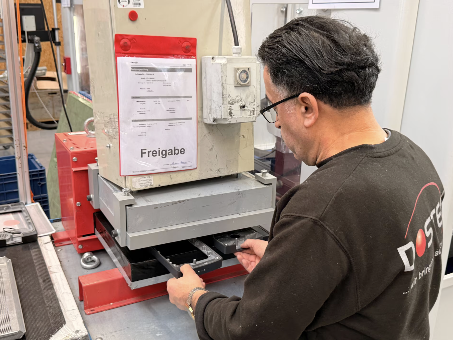 Một công nhân vận hành máy móc tại cơ sở sản xuất của Dostech GmbH ở Moessingen, Đức, ngày 10/2/2026 (Ảnh: REUTERS/Sebastian Fehrle).