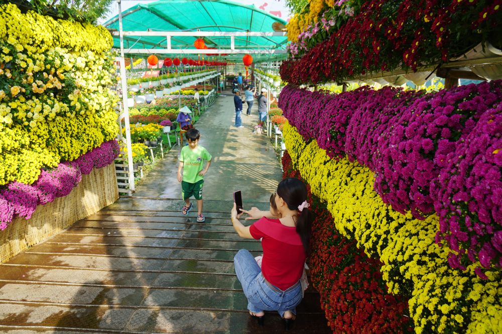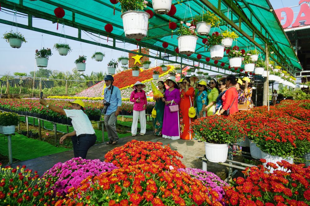 Đoàn du khách từ Bình Dương đến chiêm ngưỡng và lưu lại những khung hình đẹp bên Làng hoa Sa Đéc.