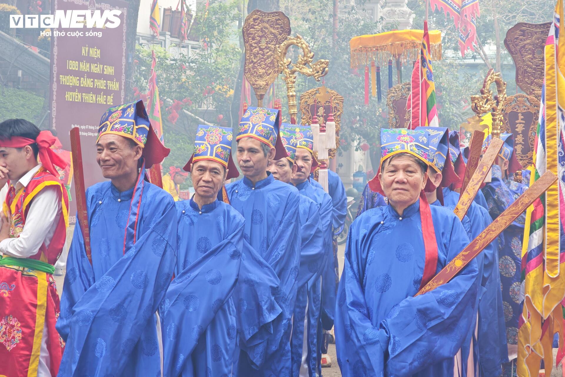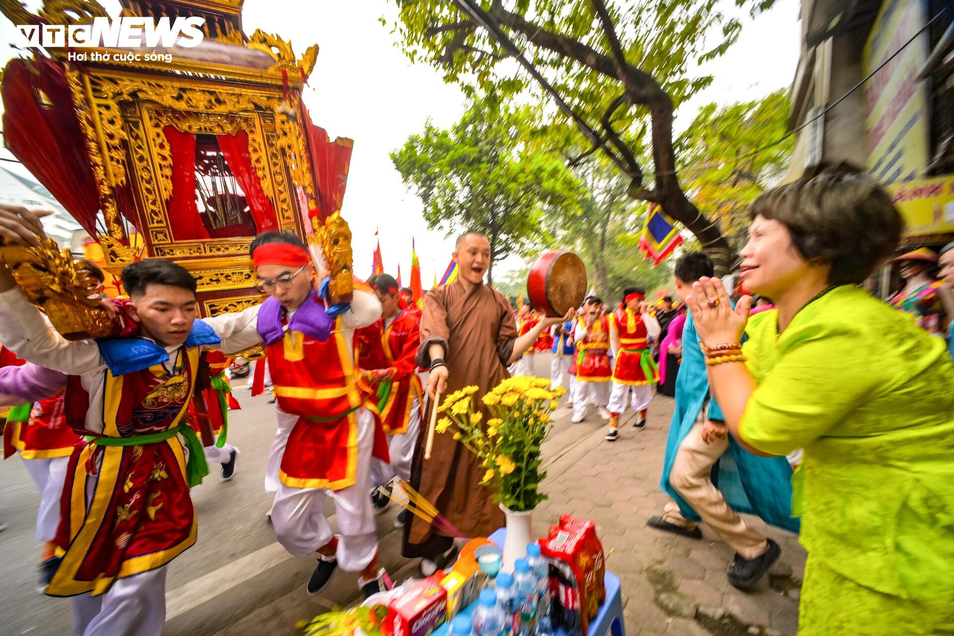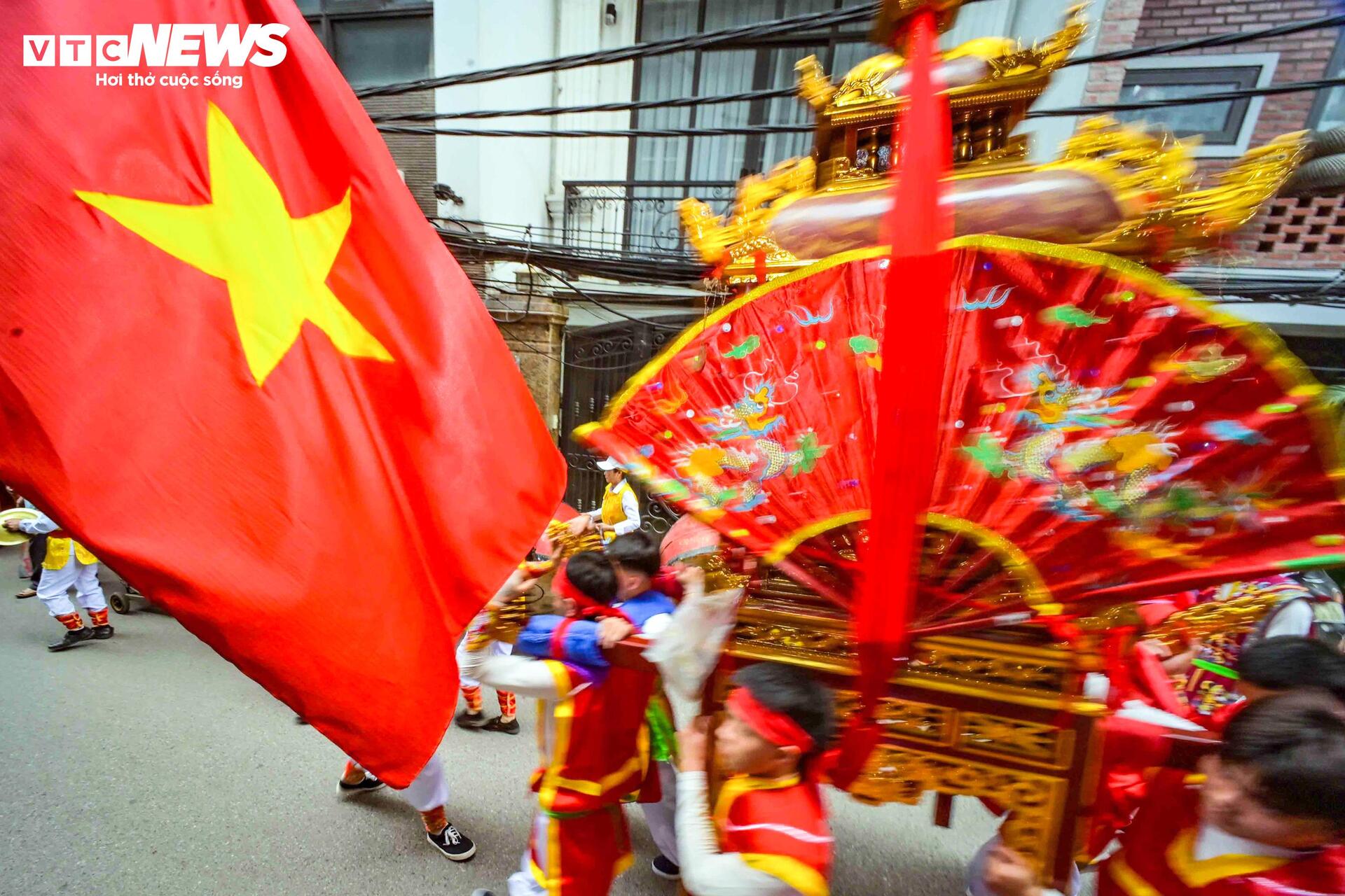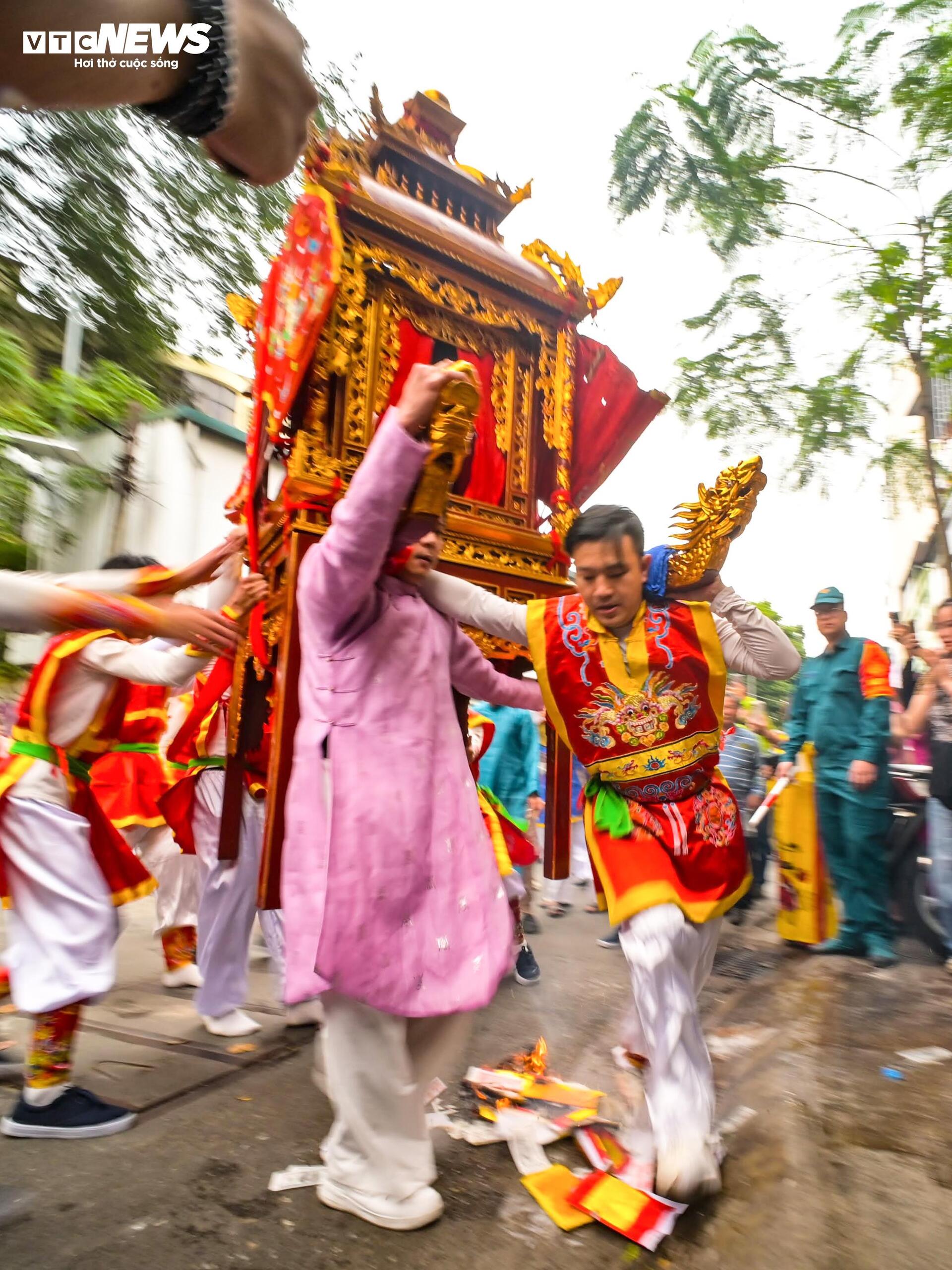 Hàng chục thanh niên trai tráng trong các giáp nhanh chóng vào vị trí, đồng loạt nhấc cỗ kiệu sơn son thếp vàng.