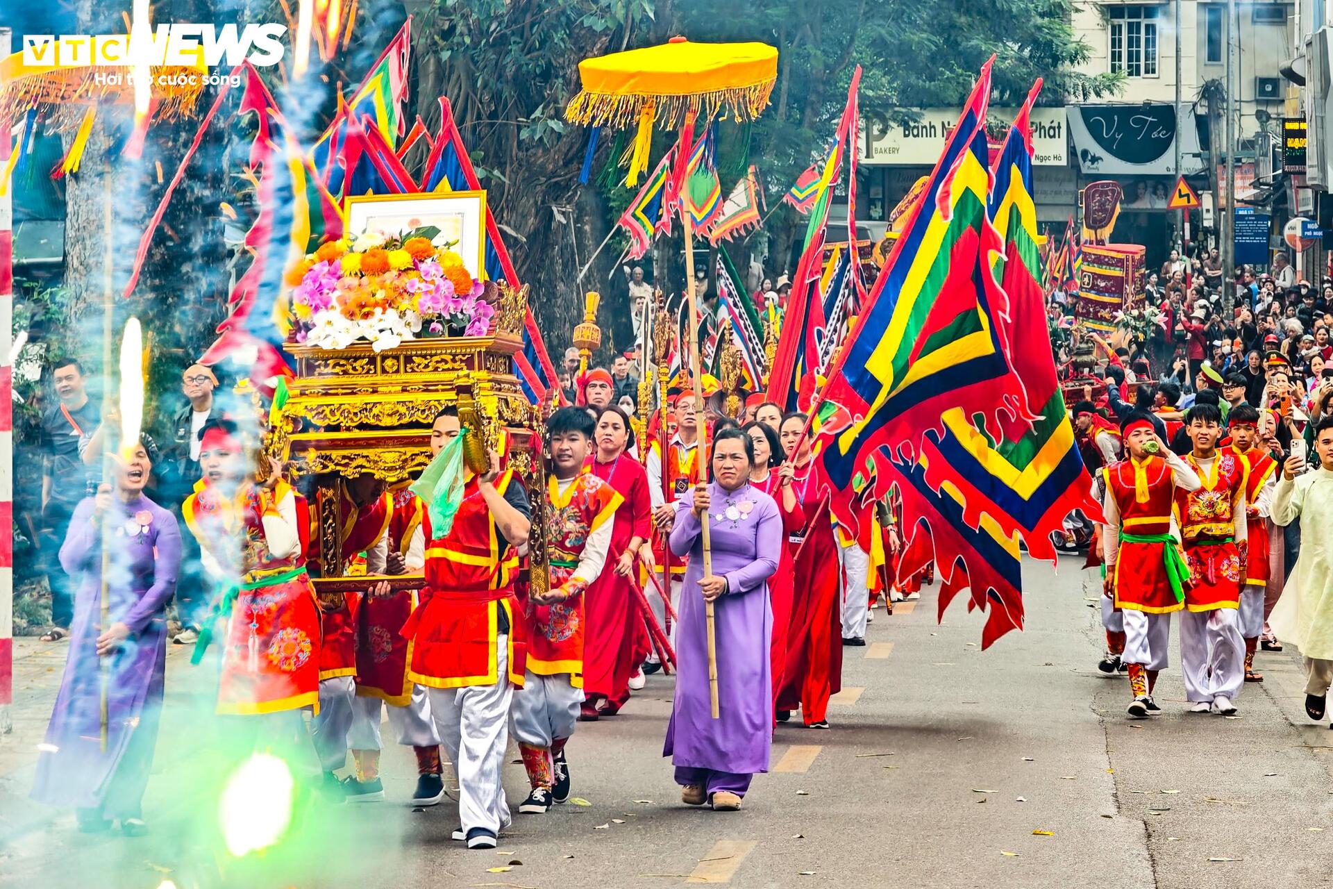 Người dân hai bên đường đứng chắp tay, hướng về kiệu Thánh với thái độ trang nghiêm. “Nghi thức này đã có từ lâu. Khi đoàn rước chạy nhanh, mọi người tin rằng năm đó sẽ gặp nhiều may mắn. Chứng kiến cảnh thanh niên cùng nhau khiêng kiệu, tôi thấy rõ tinh thần đoàn kết của cộng đồng”, một người dân sinh sống tại phường Ba Đình nói.