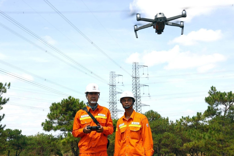 Đội truyền tải điện Biển Hồ sử dụng fly cam kiểm tra tuyến đường dây đường dây 500kV Thạnh Mỹ-Pleiku 2. (Ảnh: Huy Hùng/TTXVN)