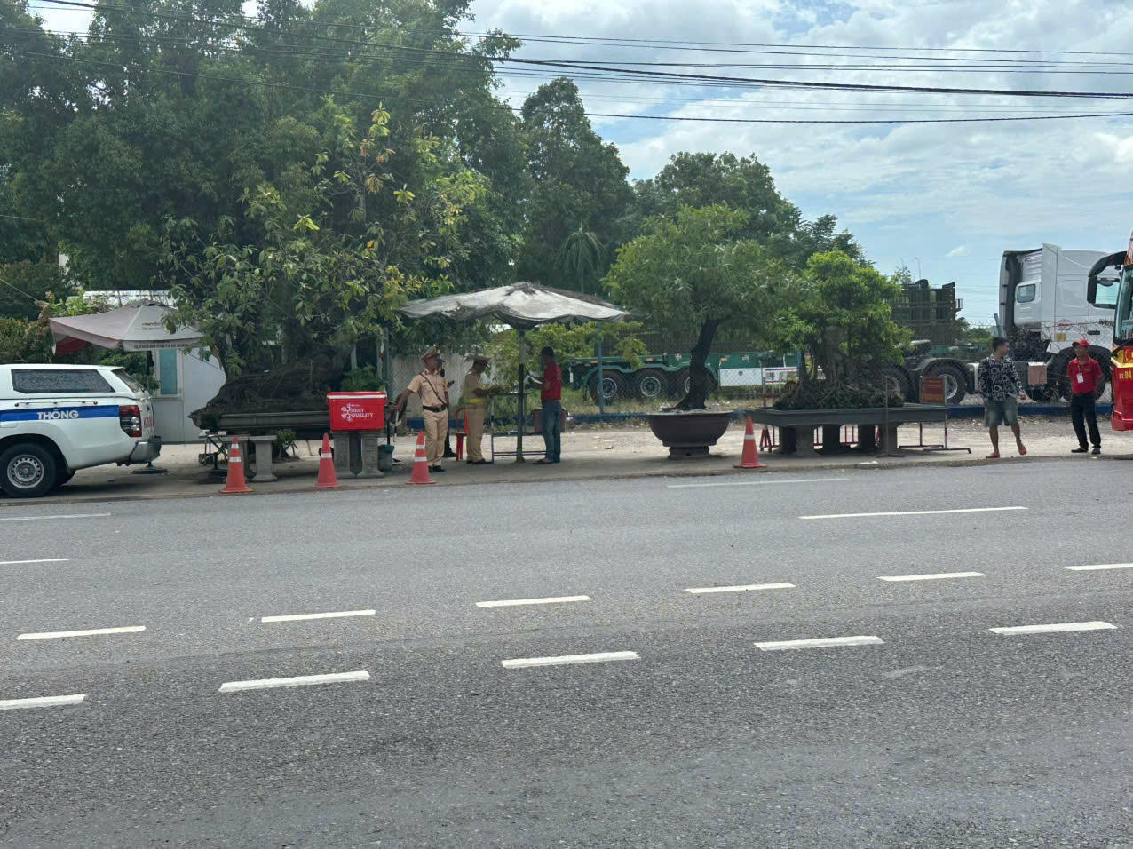 Thiết lập điểm chốt chặn cố định kiểm soát vi phạm nồng độ cồn trên tuyến quốc lộ.