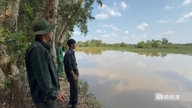 Lực lượng bảo vệ cơ động đang thực hiện công tác tuần tra tại Vườn quốc gia Tràm Chim. (Ảnh: Bùi Đạt).