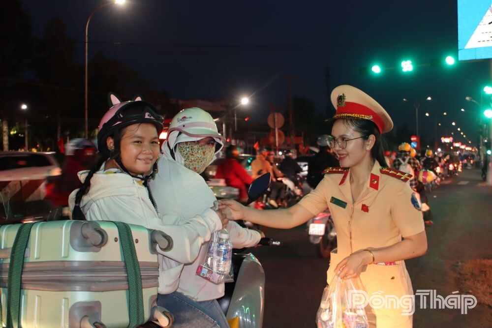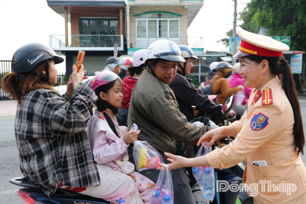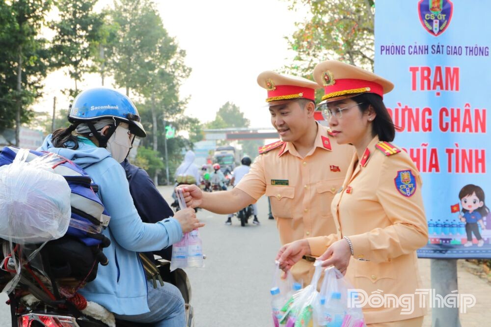 Chương trình được triển khai tại 2 điểm chính: Quốc lộ 1 (xã Châu Thành) và Quốc lộ N2 (xã Tháp Mười). Tại đây, lực lượng CSGT cùng đoàn viên, thanh niên địa phương tặng miễn phí nước uống đóng chai, khăn lạnh, bánh, sữa và tạo điều kiện cho bà con nghỉ ngơi, phục hồi sức khỏe sau quãng đường dài.