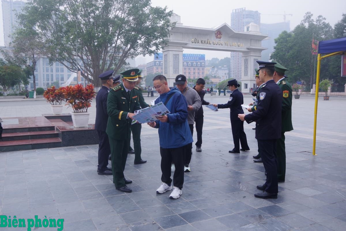 Tiếp theo đó, tại cửa khẩu quốc tế đường bộ Lào Cai - Hà Khẩu, Đồn Biên phòng cửa khẩu quốc tế Lào Cai đã phối hợp với Trạm kiểm tra Biên phòng xuất nhập cảnh Hà Khẩu tổ chức tuyên truyền pháp luật cho cư dân biên giới và hành khách xuất, nhập cảnh qua cửa khẩu. Lực lượng Biên phòng hai bên đã phối hợp phát tờ rơi, tuyên truyền bằng 2 thứ tiếng Việt Nam, Trung Quốc. Nội dung tuyên truyền, phổ biến về các quy định quản lý xuất, nhập cảnh, phòng chống buôn lậu, gian lận thương mại và các loại tội phạm khác trong dịp trước và sau Tết Nguyên đán Bính Ngọ 2026. Thông qua hoạt động tuyên truyền, giúp hành khách, cư dân hai bên biên giới nâng cao nhận thức, chấp hành tốt các quy định về quản lý, bảo vệ biên giới, cửa khẩu.