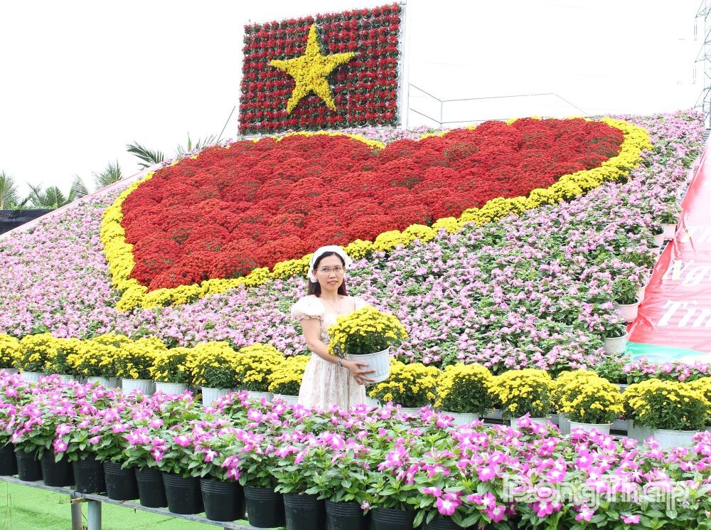 Ông Đặng Văn Giàu, Tổ trưởng Tổ hợp tác Sản xuất và Cung ứng hoa kiểng Tân An (phường Sa Đéc) đã thiết kế tiểu cảnh “Trái tim kết hợp lá cờ Tổ quốc” rộng 70 m², được kết từ khoảng 1.600 chậu hoa dừa cạn, cúc pico và cúc mâm xôi.