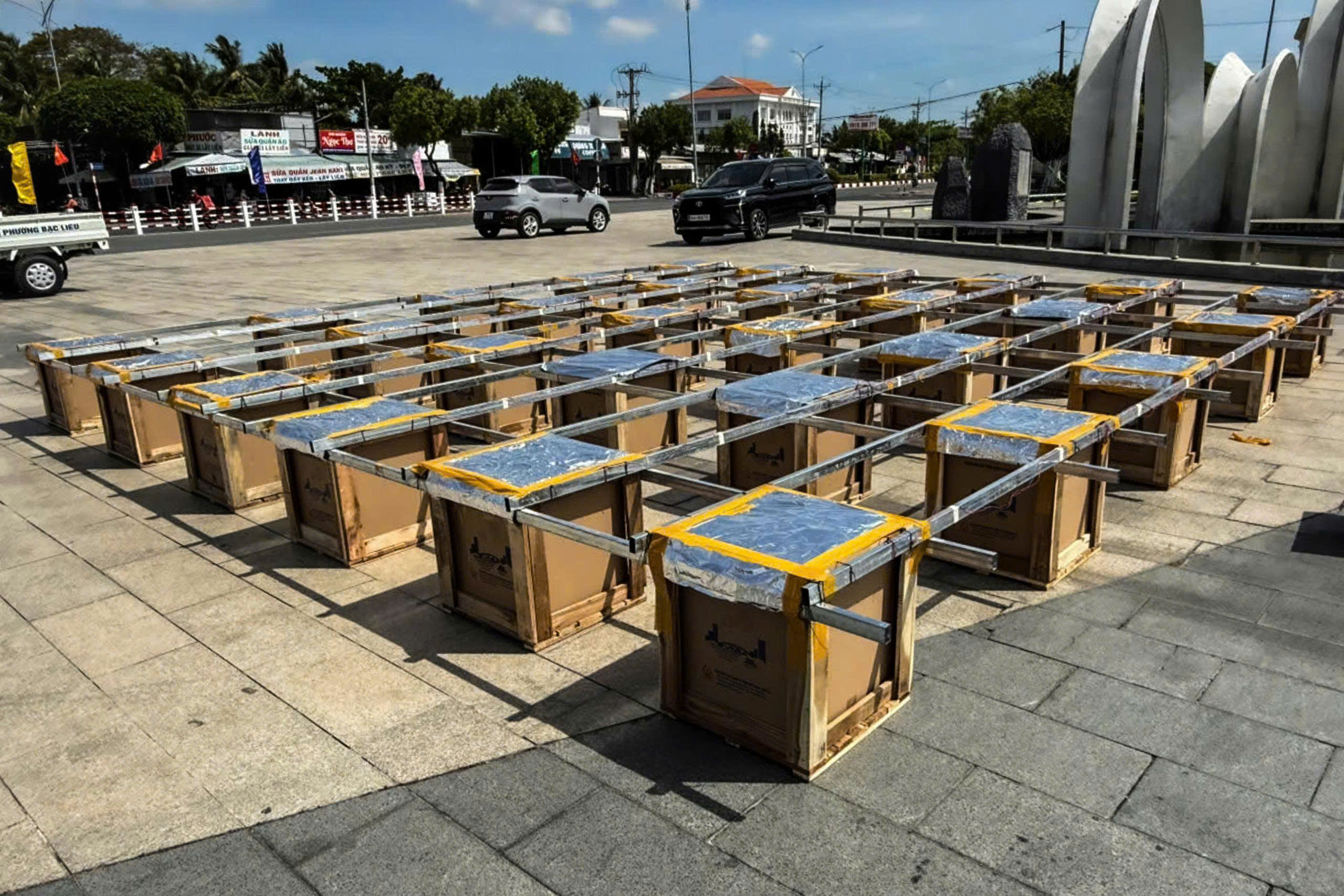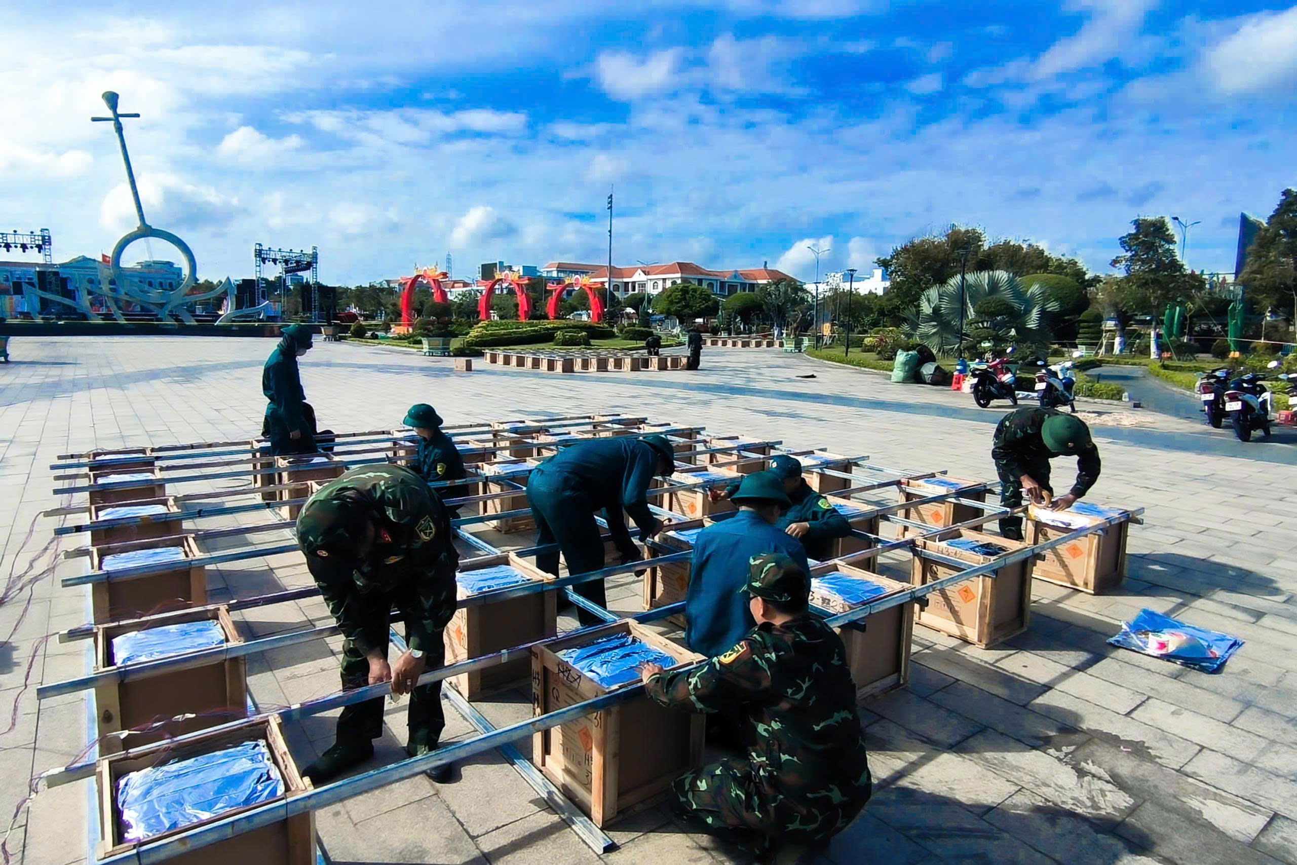 Tại điểm bắn Quảng trường Phan Ngọc Hiển (phường An Xuyên), trận địa pháo hoa được bố trí ở sân Trung tâm Hội nghị tỉnh, lực lượng chức năng đã hoàn tất lắp đặt và cố định các giàn pháo chắc chắn. Các cán bộ, chiến sĩ tỉ mỉ kiểm tra số lượng, thông số kỹ thuật trước khi lắp đặt theo đúng sơ đồ thiết kế nhằm đảm bảo độ chính xác và an toàn tuyệt đối.