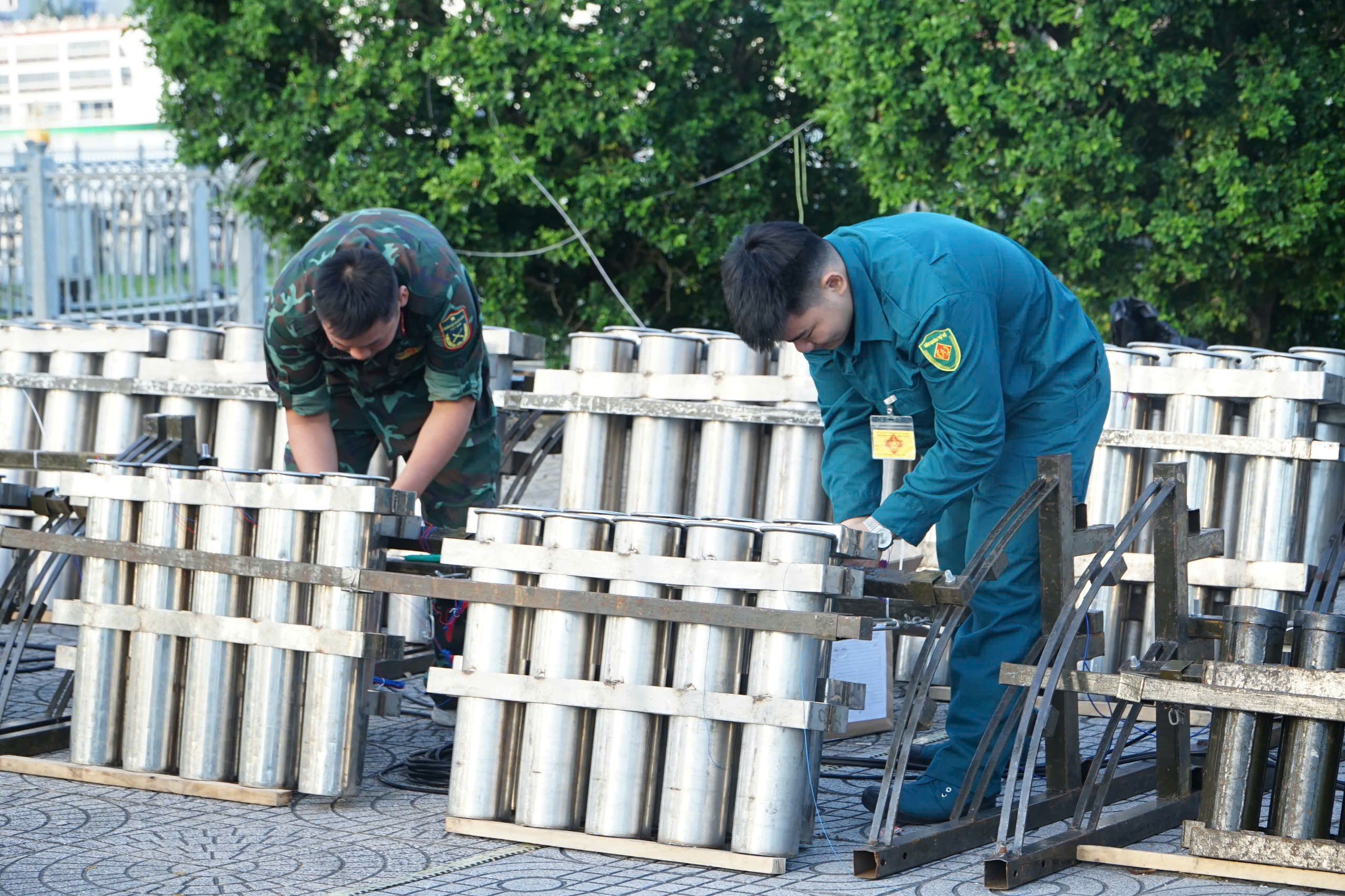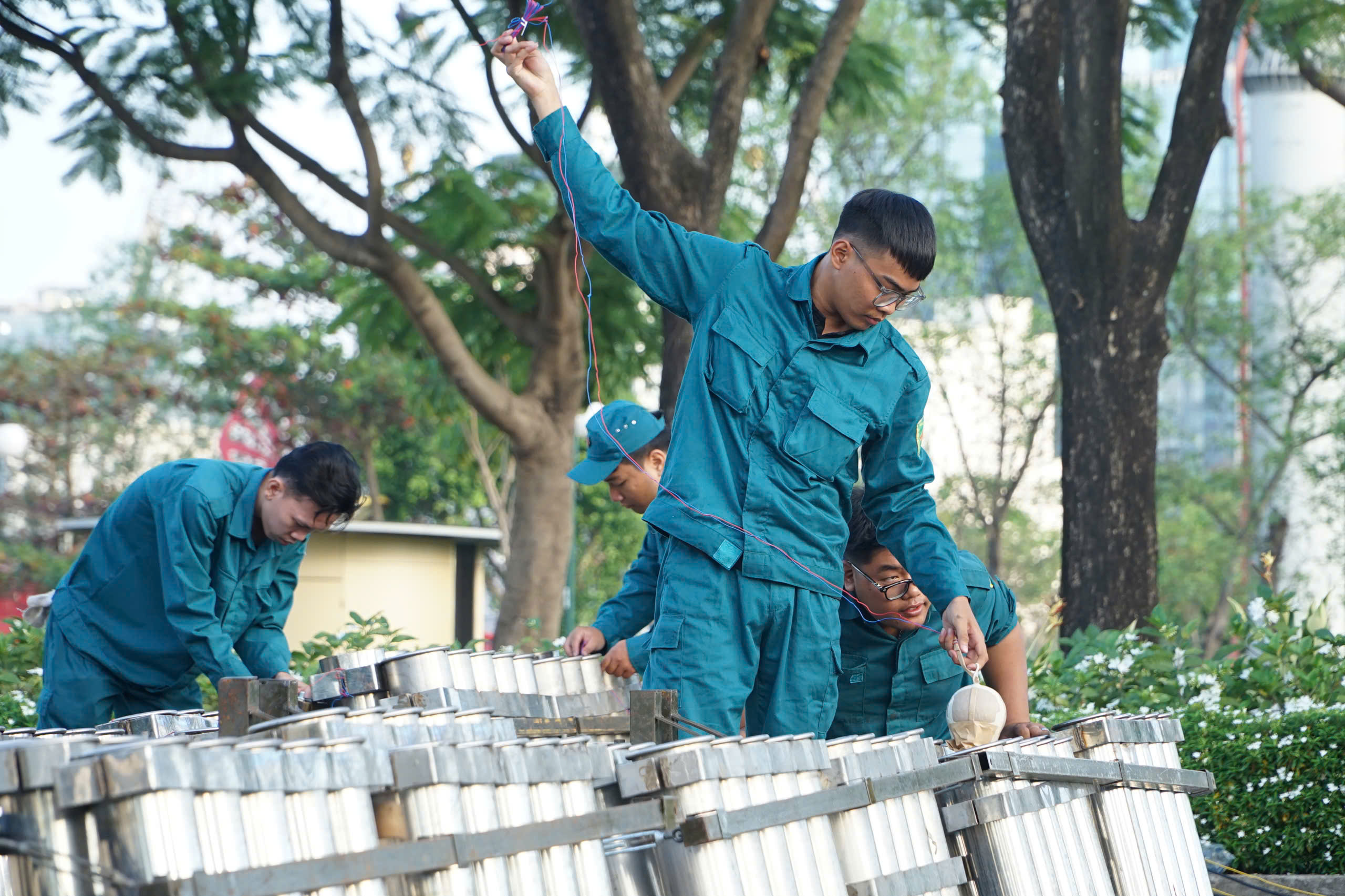 Trong hai ngày qua, lực lượng chức năng triển khai quy trình nghiêm ngặt từ lắp đặt nòng pháo, đấu nối dây điện đến kiểm tra hệ thống kích nổ. Các cán bộ, chiến sĩ Bộ Tư lệnh TP.HCM trực tiếp đảm nhiệm nhiều khâu kỹ thuật quan trọng nhằm bảo đảm tiến độ và an toàn tuyệt đối.