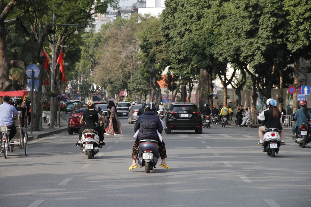 Nhiều người dân tập trung tại khu vực Hồ Gươm. Ảnh: MINH TRÚC
