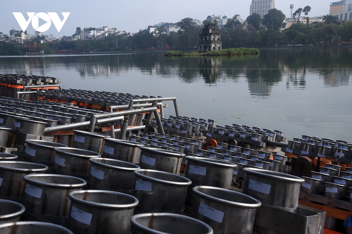 Tại khu vực Hồ Gươm, hai trận địa pháo hoa đang được bố trí số lượng rất lớn để phục vụ nhân dân.