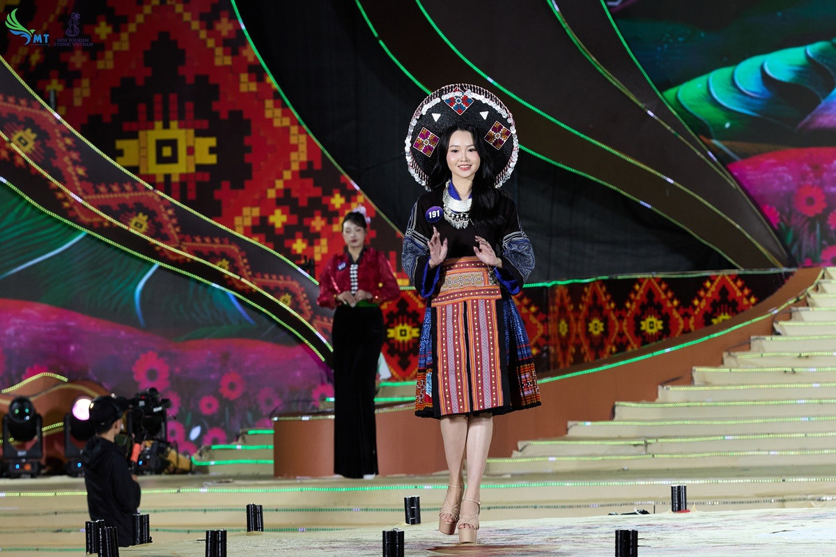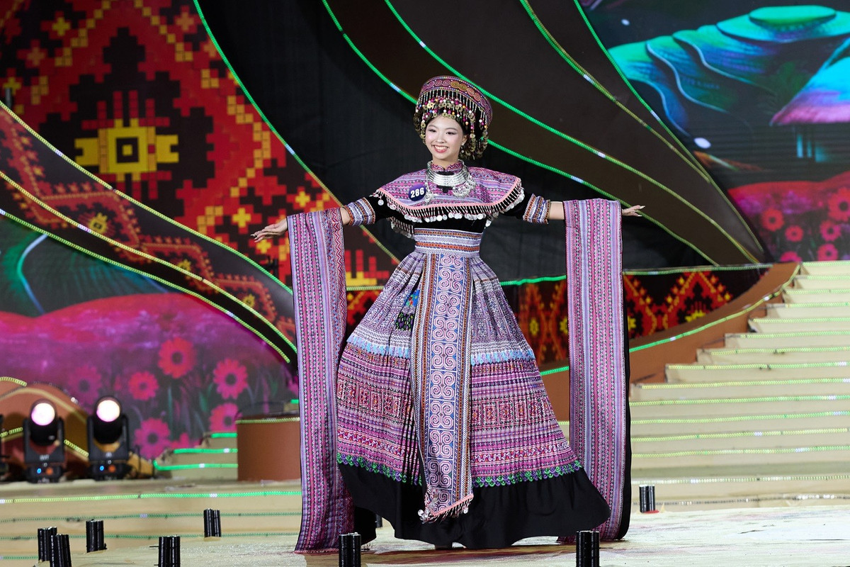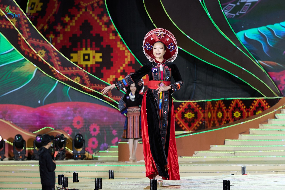Ở phần thi đầu tiên, các thí sinh khoác lên mình tà áo dài đất Việt kết hợp cùng những bản sắc văn hóa các dân tộc vùng cao như những đường dệt, hoa văn, đặc biệt là chất liệu di sản thổ cẩm... trong bộ sưu tập “Sắc màu thổ cẩm” của nhà thiết kế Cao Thu Vân. Mỗi bộ trang phục trong bộ sưu tập là một tác phẩm nghệ thuật kể về văn hóa, thiên nhiên và truyền thống phong phú của các dân tộc.