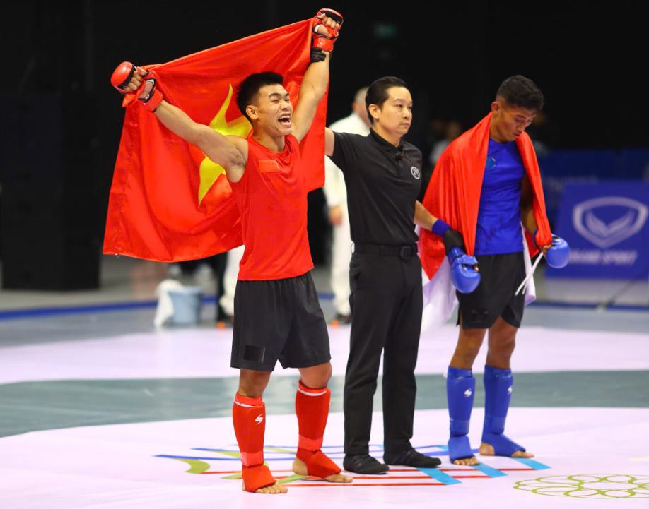 VĐV Trần Ngọc Lượng giành huy chương vàng thứ 2 cho MMA Việt Nam tại SEA Games 33. Ảnh: VIỆT AN