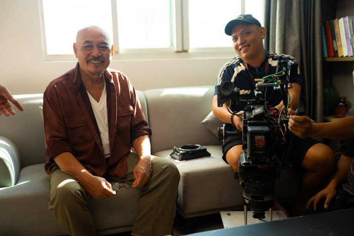Khoảnh khắc thầm lặng của diễn viên Trần Quang Đại theo dõi một cảnh quay.