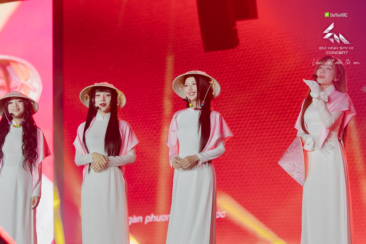 Phát biểu mở màn, ông Bảo Thái, đại diện đơn vị sáng tạo và sản xuất chương trình, cho biết: “Chúng ta đang tổ chức Em xinh Say hi vào một thời điểm rất đặc biệt. Hà Nội cùng nhiều tỉnh thành thân yêu của chúng ta vẫn đang chống chọi với mưa lũ. Nhưng chính trong những ngày khó khăn ấy, ban tổ chức cùng các Em xinh vẫn quyết tâm mang concert này đến với khán giả Thủ đô. Bởi Em xinh "Say hi" không chỉ là một chương trình âm nhạc, mà còn là hành trình kết nối cộng đồng và sẻ chia yêu thương”