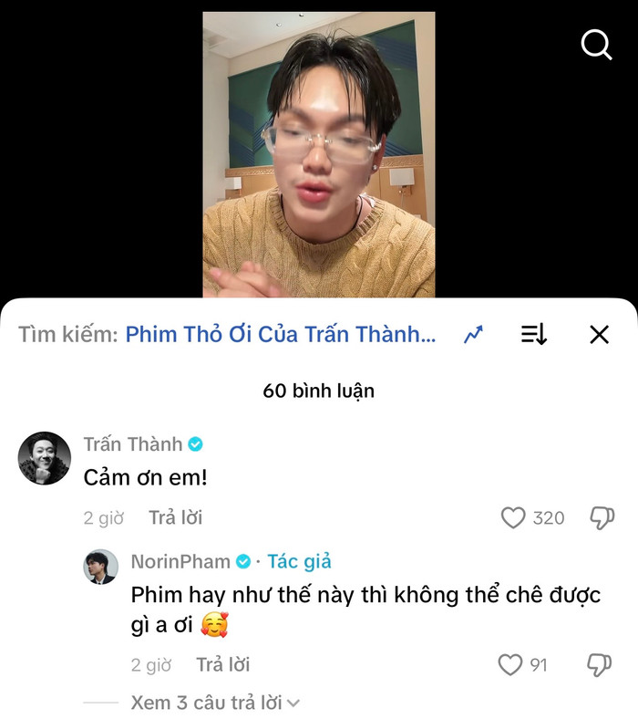 Động thái này nhanh chóng thu hút hàng loạt bình luận từ cộng đồng mạng. Giữa “biển” tương tác sôi nổi ấy, điều khiến nhiều người chú ý chính là phản hồi trực tiếp từ Trấn Thành. Không dài dòng, không hoa mỹ, nam đạo diễn chỉ để lại vỏn vẹn ba từ: “Cảm ơn em!”.