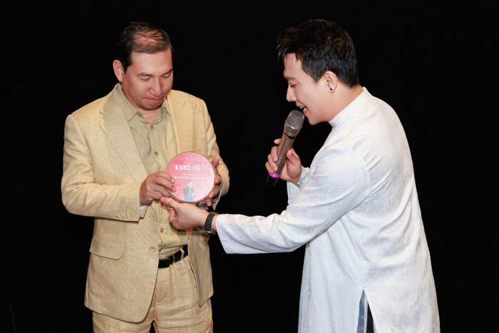 NSƯT Quang Thắng vui mừng khi nhận được cúp kỷ niệm từ phía Trấn Thành. Ảnh: NSX