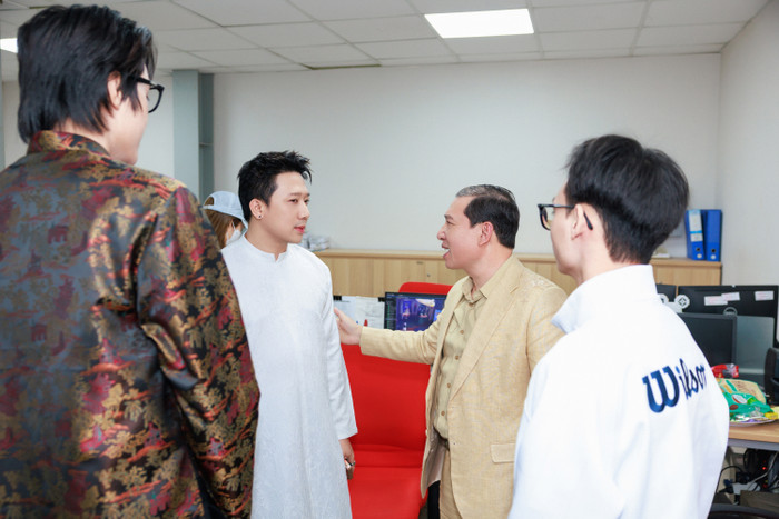 Trấn Thành và NSƯT Quang Thắng thể hiện sự thân thiết, cởi mở hậu trường chuyến cinetour tại Hải Phòng. Ảnh: NSX