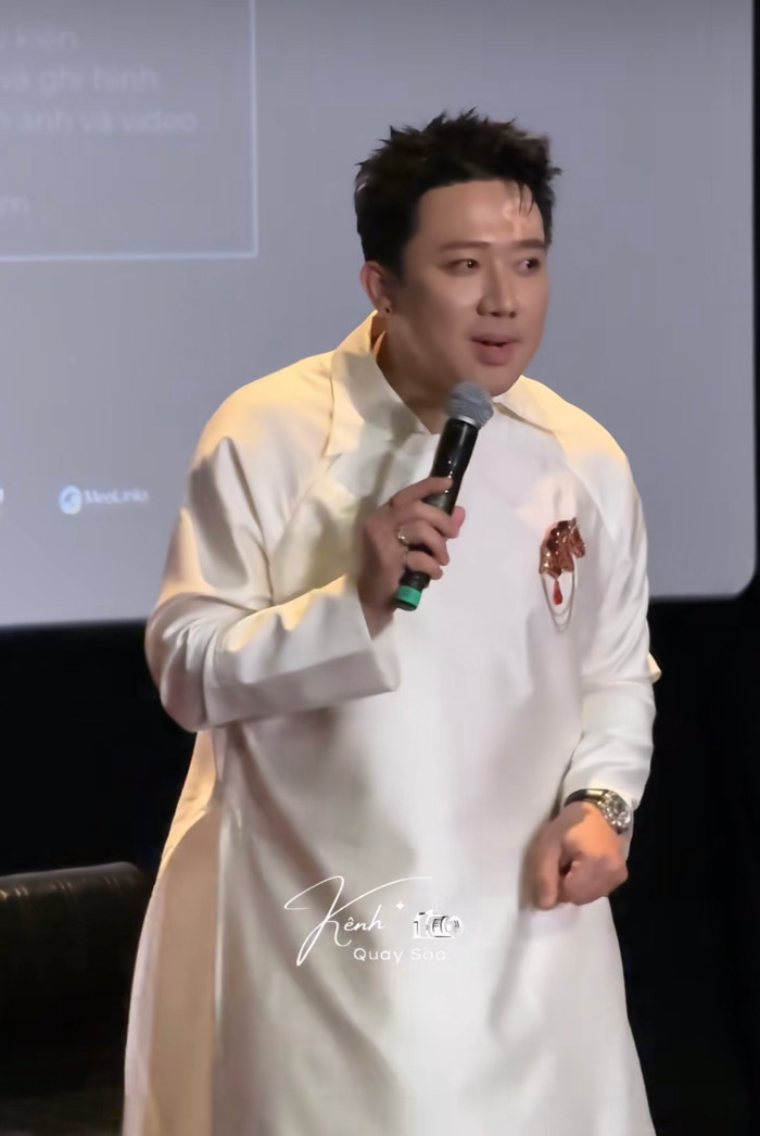 Trấn Thành phát biểu tại buổi ra mắt phim Thỏ Ơi!! về việc từng muốn 6 gương mặt mới tham gia đóng chính trong phim. - Ảnh: Chụp màn hình Kênh Quay Sao.