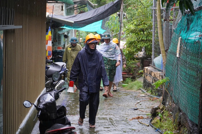 Lực lượng chức năng đi từng ngõ hẻm để yêu cầu người dân sơ tán trước khi bão số 13 Kalmaegi đổ bộ