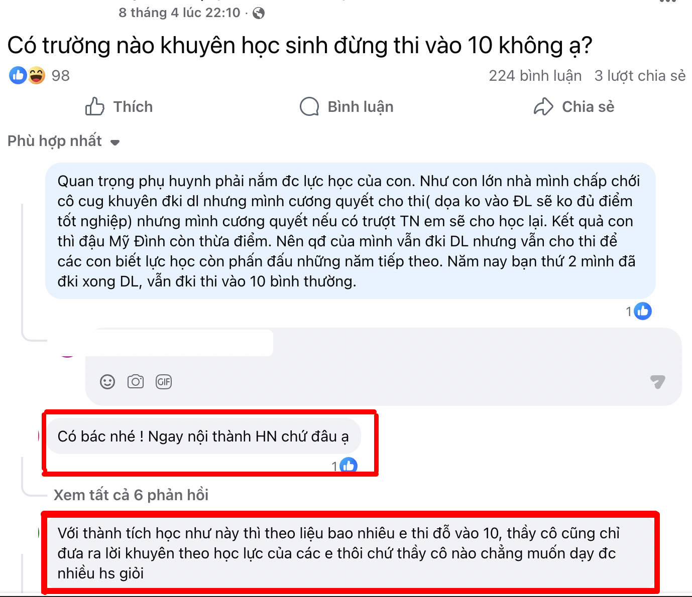 Những luồng ý kiến trái chiều cho thấy câu chuyện tư vấn thi lớp 10 không chỉ đơn thuần là định hướng học tập, mà còn liên quan đến tâm lý phụ huynh, học sinh cũng như áp lực thành tích trong nhà trường.