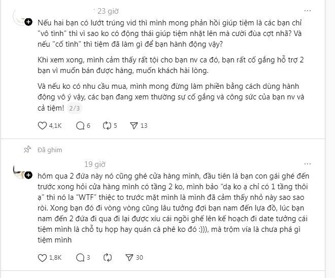 Cửa hàng bức xúc đăng tải video về 2 vị khách.