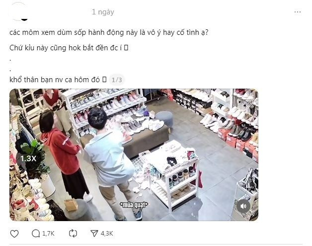 Chủ cửa hàng đã bức xúc đăng tải clip kèm lời thắc mắc: "Các mom xem dùm shop hành động này là vô ý hay cố tình ạ? Chứ kiểu này cũng không bắt đèn được í, khổ thân bạn nhân viên ca hôm đó."
