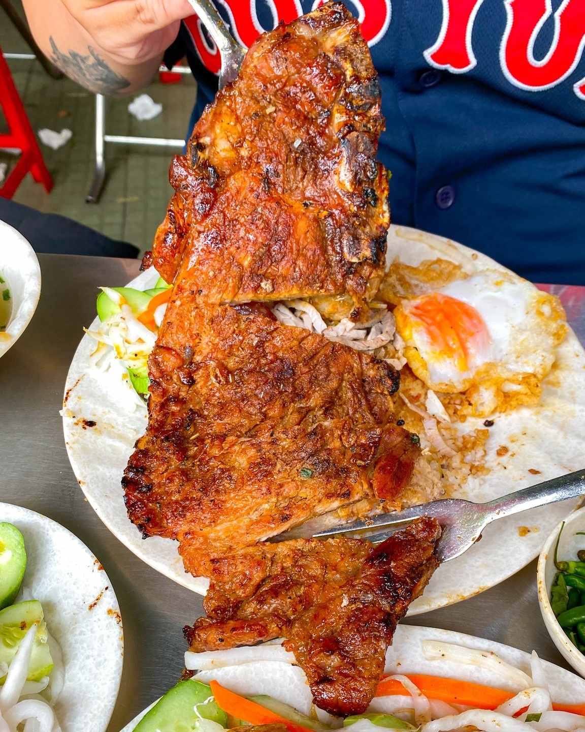 Miếng sườn nướng kích cỡ lớn trong đĩa cơm tấm Ba Ghiền. Ảnh: Địa Điểm Ăn Uống.