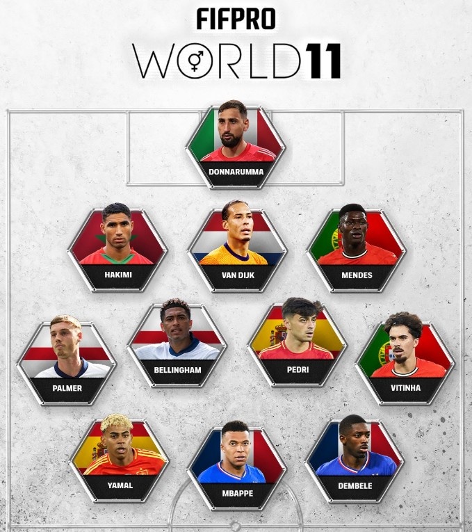 Trong khi đó, Lamine Yamal đi vào lịch sử với tư cách làlà cầu thủ trẻ nhất từng được chọn vào đội hình tiêu biểu năm của FIFPro.