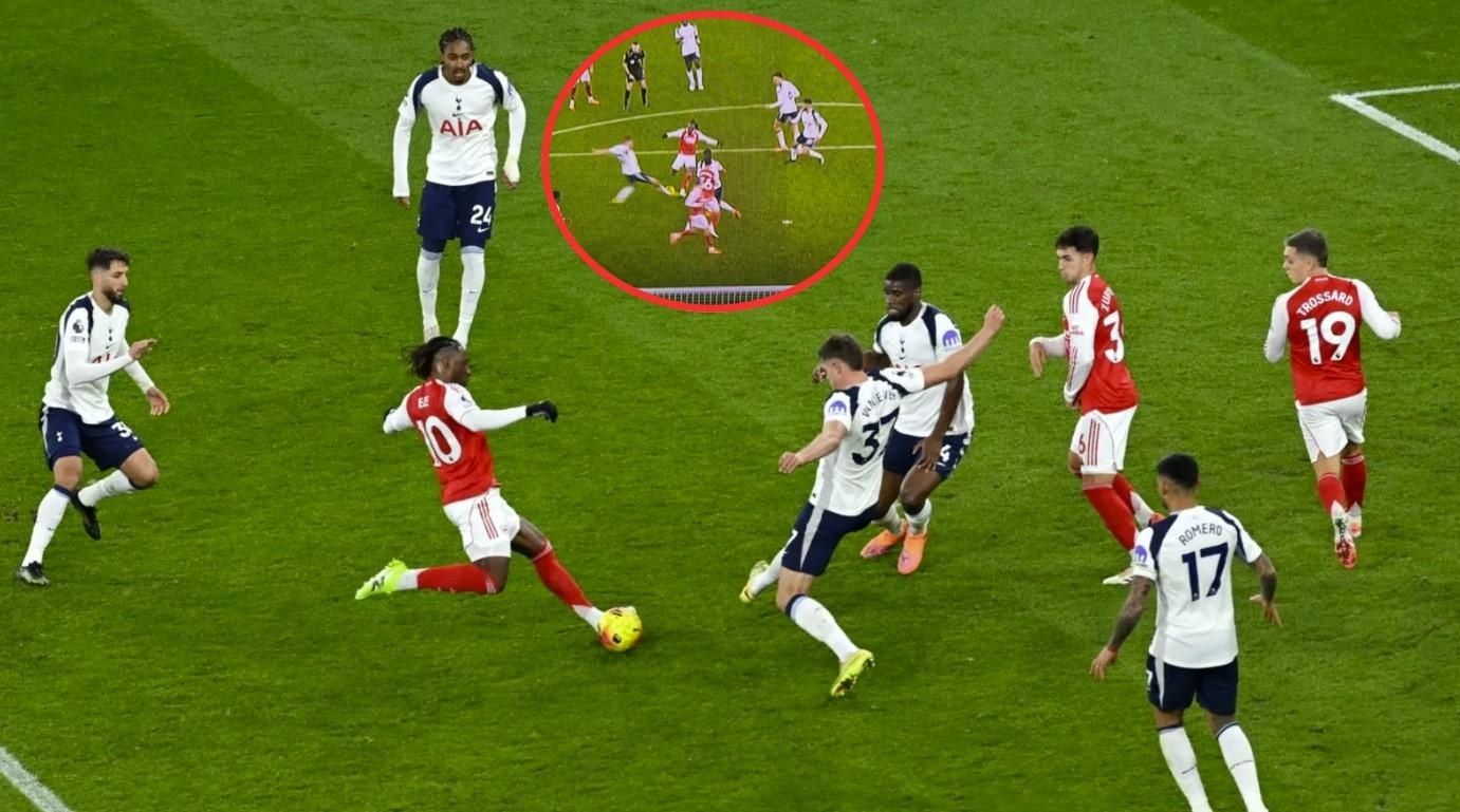 Tình huống diễn ra trước giờ nghỉ tại Emirates, khi Arsenal nâng tỷ số lên 2-0. Ngay sau cú sút của Eze, thủ môn Guglielmo Vicario giơ tay khiếu nại, cho rằng anh bị che tầm nhìn bởi các cầu thủ Arsenal đứng ở vị trí việt vị. VAR vào cuộc, nhưng kết luận bàn thắng hợp lệ.