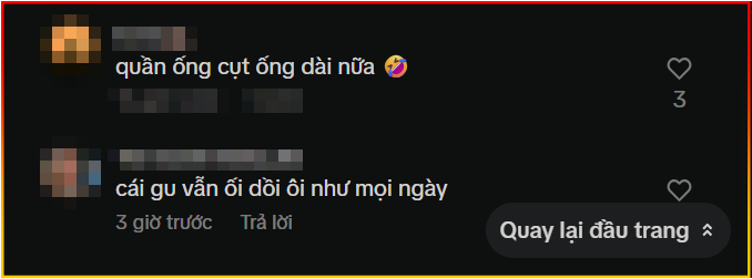 Điểm gây tranh cãi nhiều nhất là chiếc quần được thiết kế bất đối xứng với một ống ngắn và một ống dài. Hình ảnh này nhanh chóng lan truyền trên các diễn đàn, kéo theo loạt bình luận trái chiều.