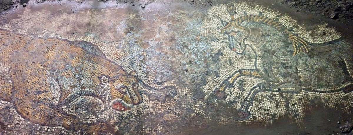Nhìn chung, bức tranh khảm 1.500 năm tuổi khắc họa những hình ảnh động vật sống động. Bức tranh khắc họa hai con vật - có thể là một con báo săn mồi và một con ngựa đang đối đầu. Ảnh: @Bảo tàng Mardin.