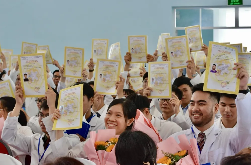 Lễ tổng kết chương trình thực hành tại bệnh viện đa khoa gắn với trạm y tế cho các bác sĩ mới ra trường. Ảnh: THẢO PHƯƠNG