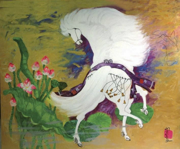 Điều đặc biệt là ông thường đặt ngựa vào không gian thực tại như mùa sen, hoa đào hay trăng hạ, khiến bức tranh có độ sâu và cảm xúc riêng biệt. Xuất thân là một người lính từng vào sinh ra tử tại chiến trường Quảng Trị, ngựa trong tranh ông dường như cũng mang theo cái khát vọng tự do và bản năng bứt phá của con người hiện đại.