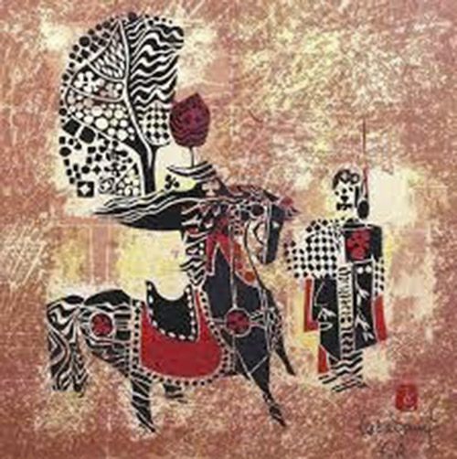 - Nguyễn Tư Nghiêm: Khai thác nhịp điệu mạnh mẽ, mảng phẳng và đường viền dứt khoát từ nền tảng mỹ thuật dân gian và điêu khắc đình làng, có thể lấy bức “Gióng” làm minh họa là rõ hơn cả.