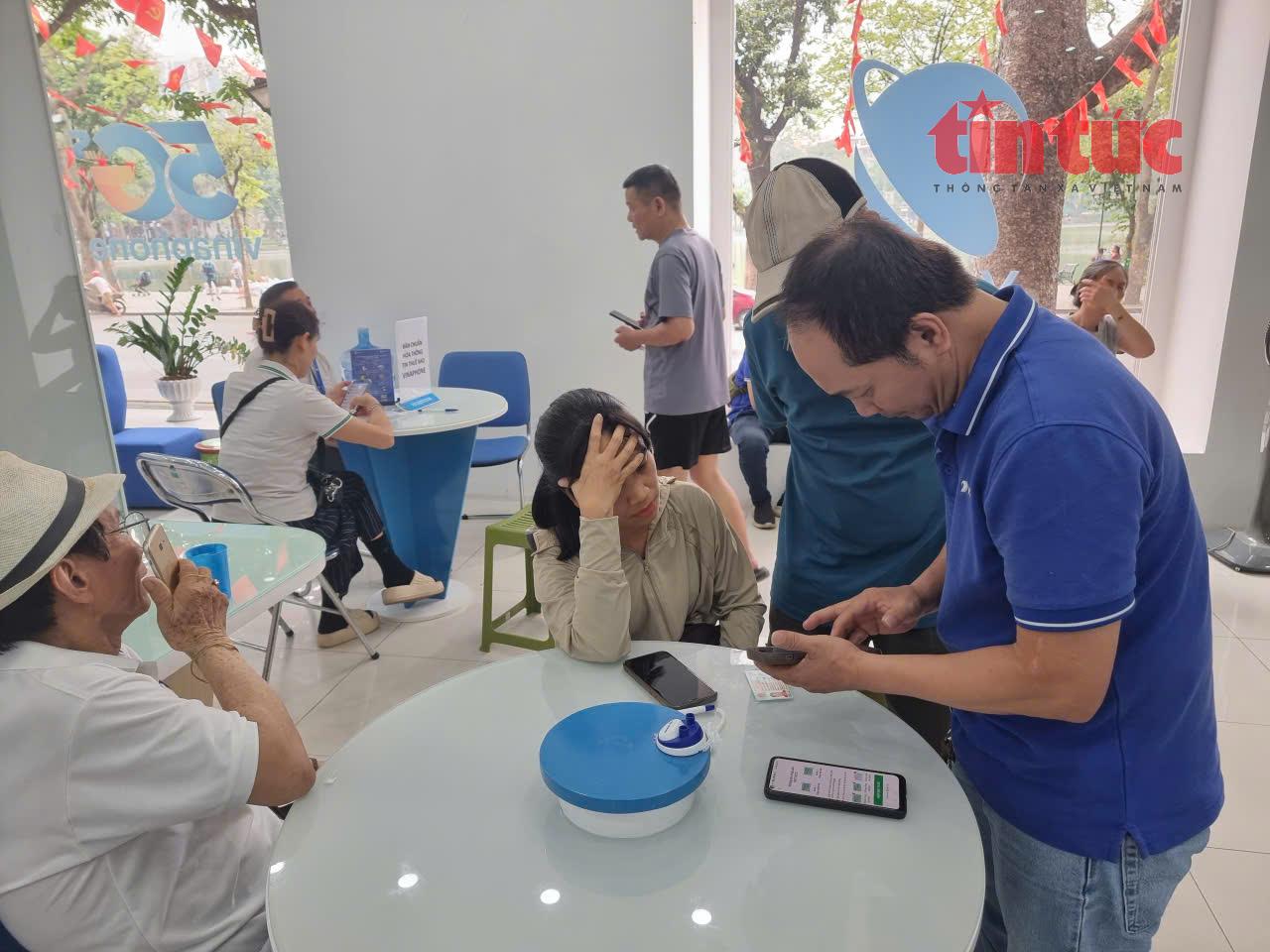 Theo ghi nhận của phóng viên báo Tin tức và Dân tộc vào trưa ngày 15/4, tại điểm giao dịch Vinaphone 71 Đinh Tiên Hoàng, nhiều người đến làm thủ tục xác thực liên quan tới chuyển nhượng hợp đồng cho người nhà, thân quen; xác thực lại từ chứng minh dân nhân 9 số sang căn cước công dân gắn chip….