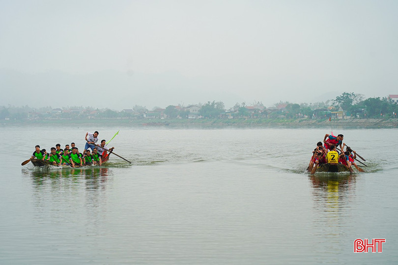 Tiếng trống cổ vũ, tiếng hò reo của đông đảo người dân hai bên bờ sông tạo nên bầu không khí sôi động, náo nhiệt.