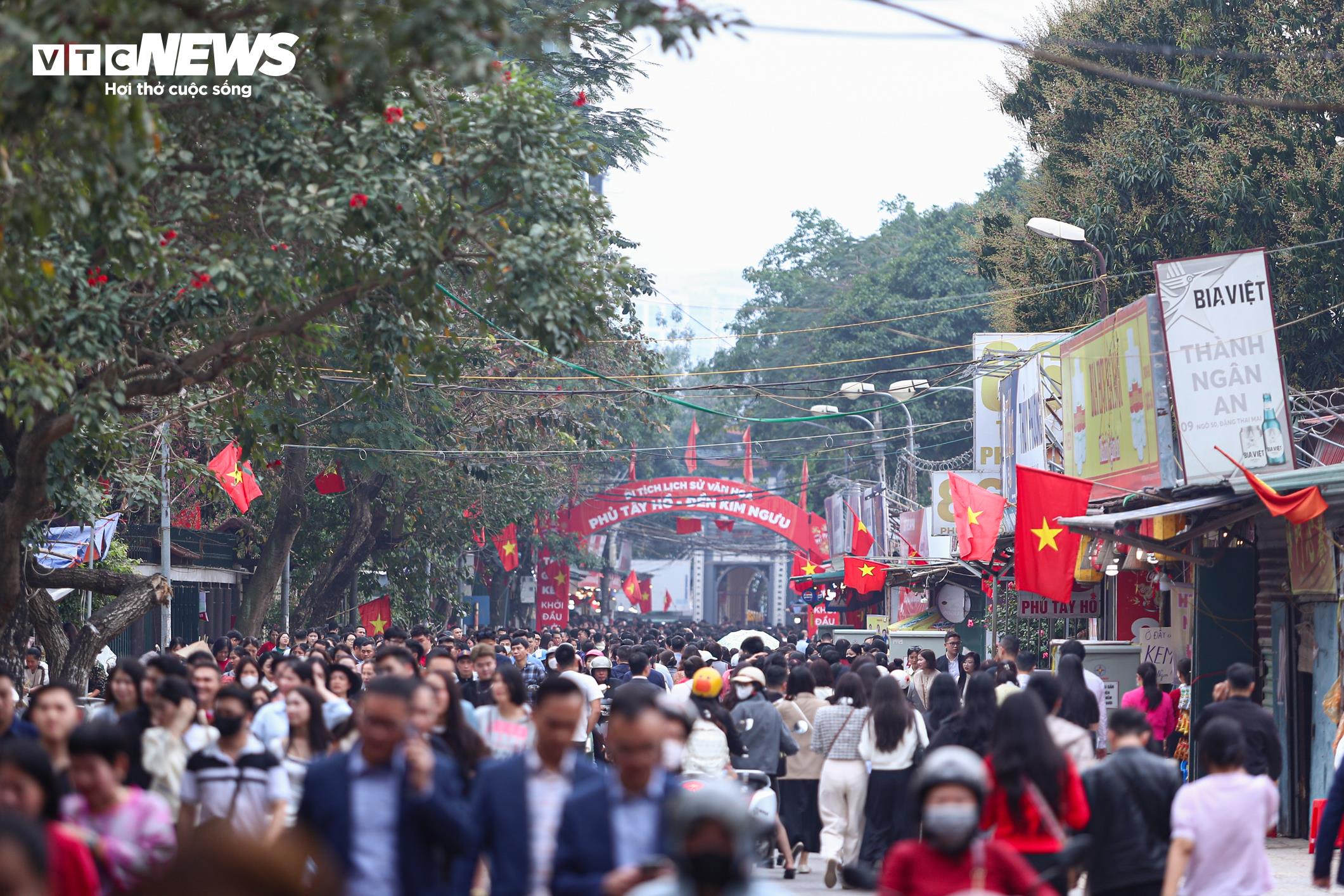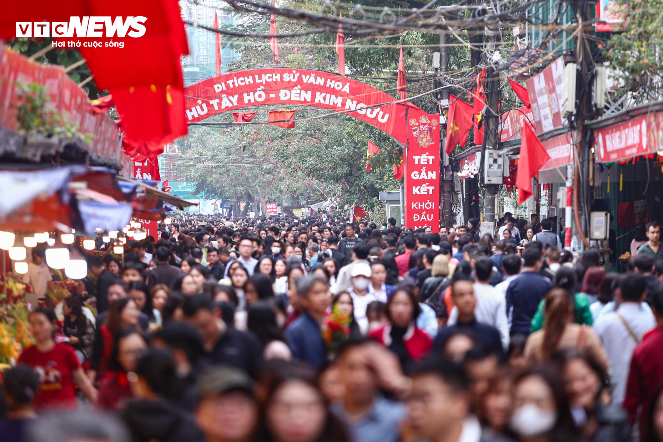Lối dẫn vào Phủ Tây Hồ chật kín người qua lại, dòng người nối đuôi nhau kéo dài, gần như không còn khoảng trống.