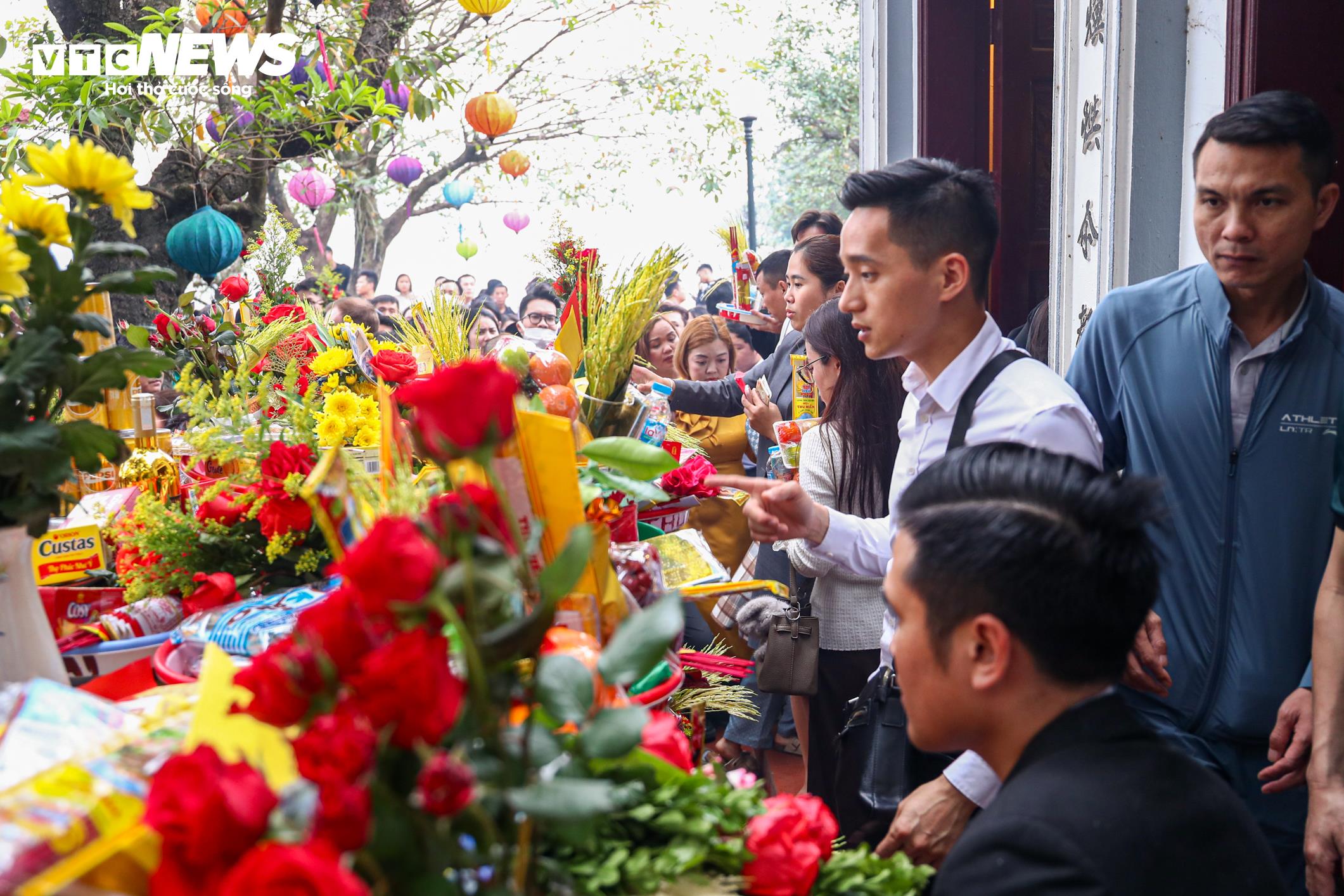 Theo quan niệm “đầu năm xin lộc, cuối năm trả lễ”, nhiều người, đặc biệt là giới kinh doanh và dân công sở, tìm đến Phủ Tây Hồ dâng hương, cầu tài lộc cho năm mới.