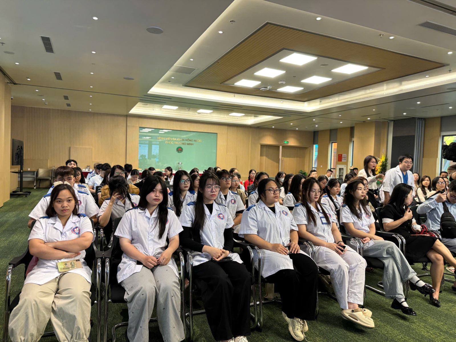 Các sinh viên Trường Cao đẳng Y tế Đặng Văn Ngữ (thuộc Viện Sốt rét - Ký sinh trùng - Côn trùng Trung ương) cùng lắng nghe và tiếp thu các kỹ thuật từ các chuyên gia.