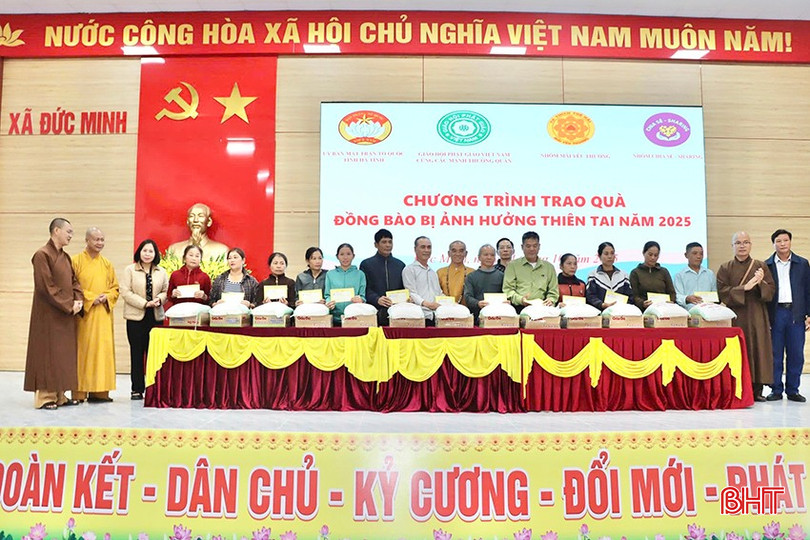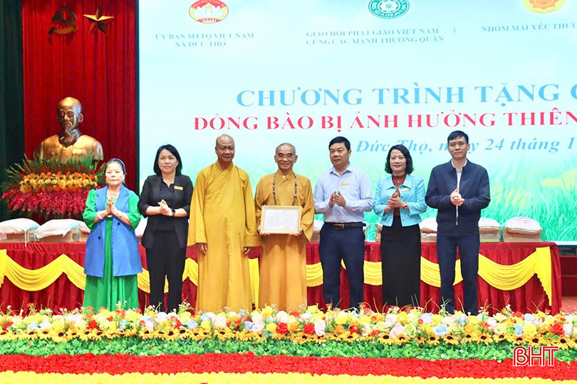 Sáng 24/10, Giáo hội Phật giáo Việt Nam cùng các mạnh thường quân đã đến trao quà hỗ trợ các gia đình bị ảnh hưởng bởi bão lũ tại các xã Đức Đồng, Đức Thọ, Đức Quang, Đức Minh, Đức Thịnh.