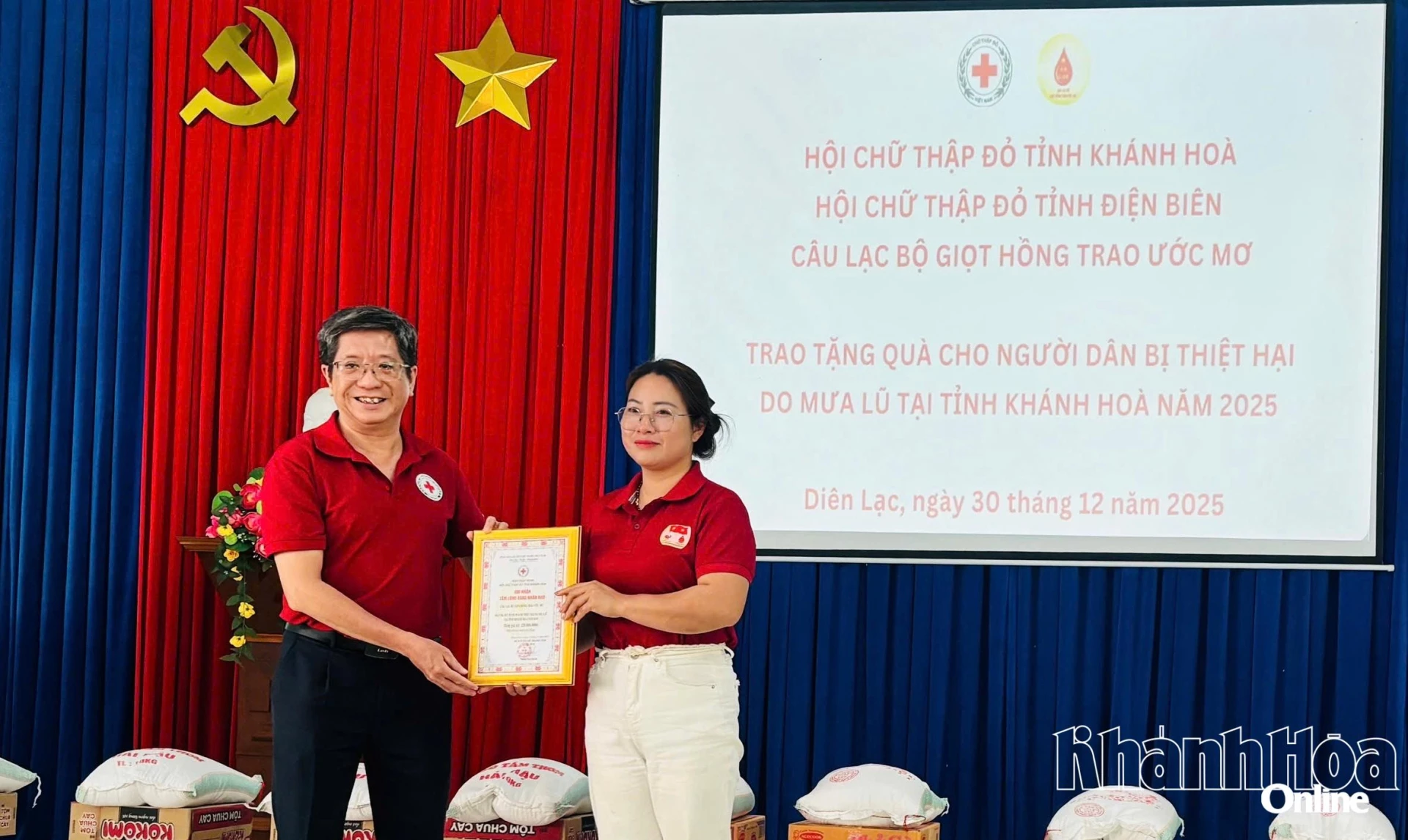 Ngày 30-12, Hội Chữ thập đỏ tỉnh phối hợp với Hội Chữ thập đỏ tỉnh Điện Biên, Câu lạc bộ Giọt hồng trao ước mơ (TP. Hà Nội) tổ chức tặng quà cho người dân xã Diên Lạc bị thiệt hại trong đợt mưa lũ vừa qua.