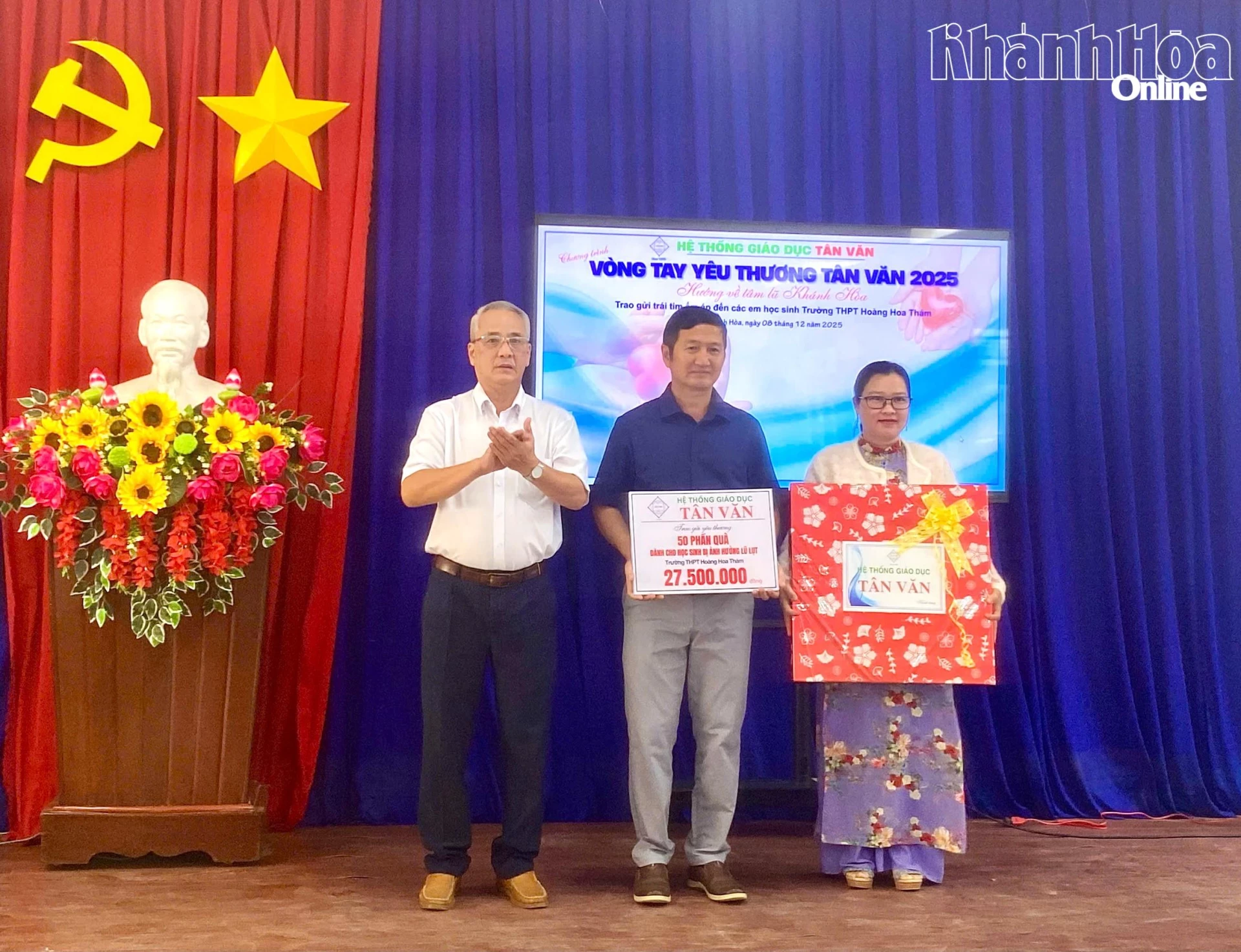 Sáng 8-12, Hệ thống Giáo dục Tân Văn (TP. Hồ Chí Minh) phối hợp với một số cựu nhà giáo nguyên là Chủ tịch Công đoàn ngành Giáo dục (cũ) của TP. Hồ Chí Minh và tỉnh Khánh Hòa tổ chức đoàn đến thăm, tặng quà cho học sinh bị ảnh hưởng bởi mưa lũ tại một số trường trên địa bàn tỉnh Khánh Hòa.