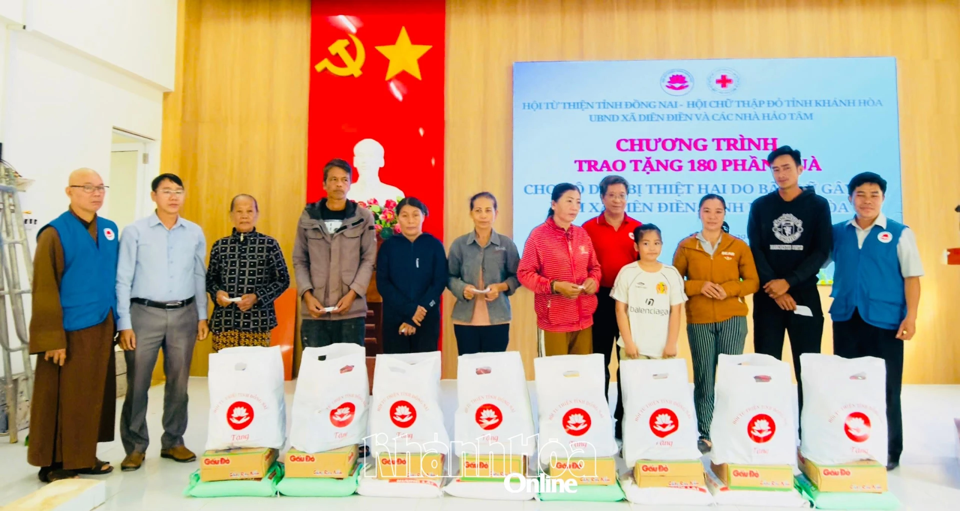 Ngày 28-12, Hội Chữ thập đỏ tỉnh Khánh Hòa phối hợp với Hội từ thiện tỉnh Đồng Nai trao tặng 180 suất quà cho người dân xã Diên Điền bị thiệt hại do mưa lũ. Mỗi suất quà trị giá hơn 1 triệu đồng, bao gồm lương thực, thực phẩm, mền, quần áo. Tổng trị giá đợt thiện nguyện hơn 187 triệu đồng.