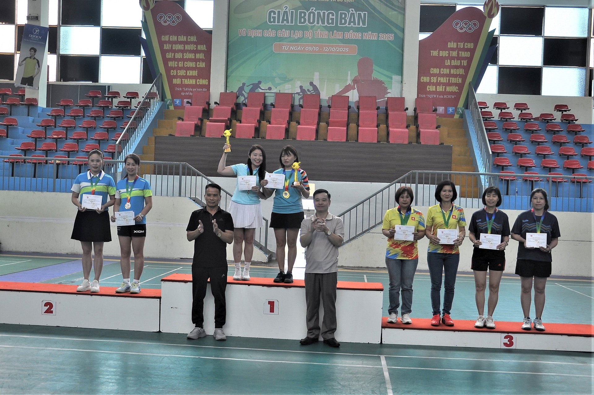 Trao giải cho các VĐV dẫn đầu trong nội dung đôi nữ giải Quản lý