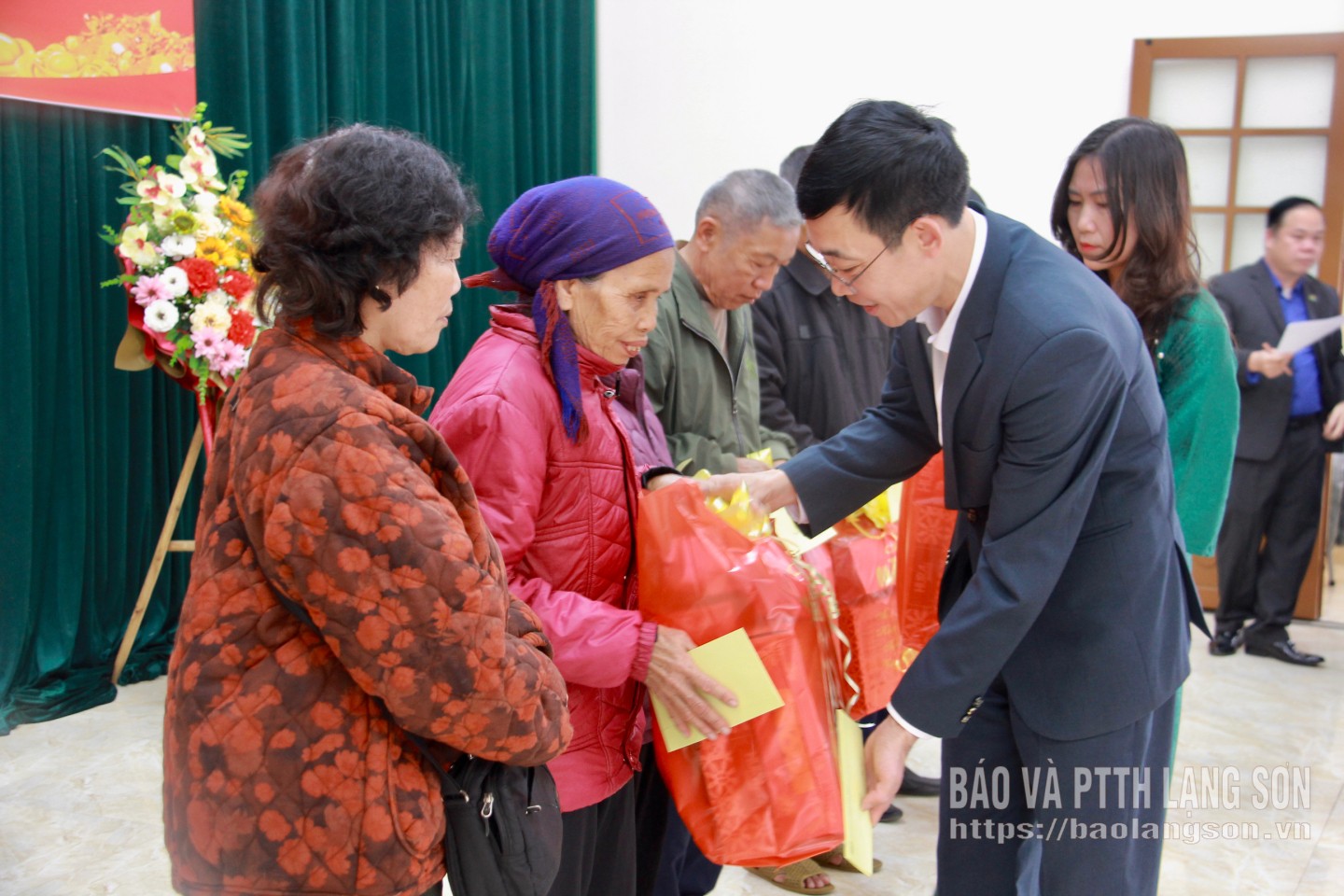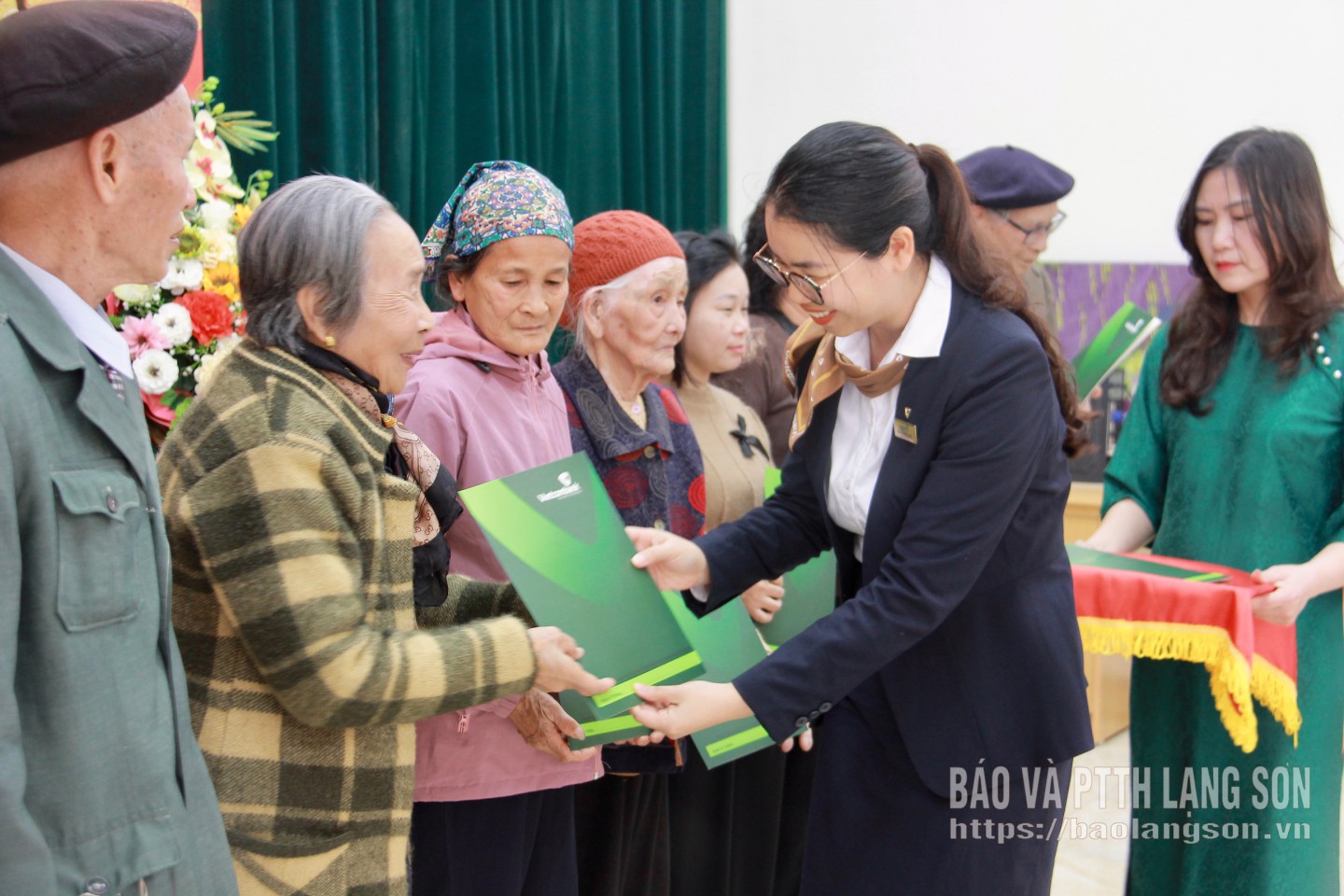 Đại diện Ngân hàng Vietcombank Lạng Sơn trao quà tết cho các gia đình