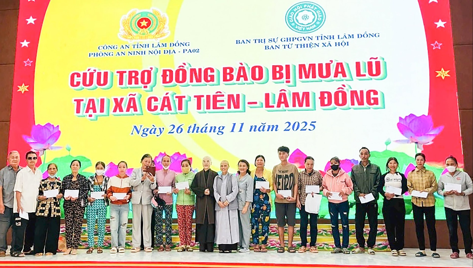 Ban Trị sự Giáo hội Phật giáo Việt Nam tỉnh trao tặng phần quà cho người dân xã Cát Tiên bị ảnh hưởng trong đợt mưa lũ vừa qua