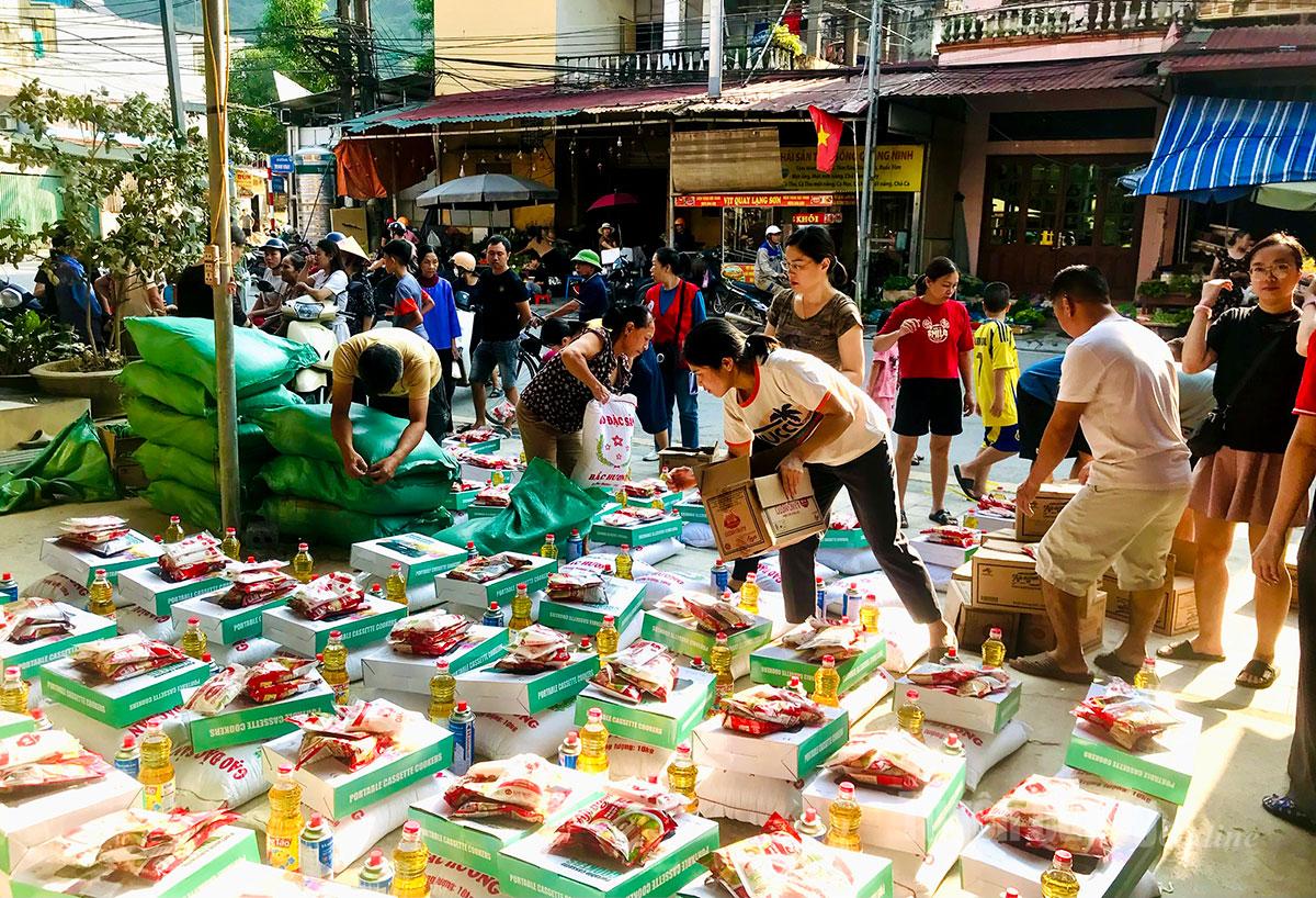 Các phần quà hỗ trợ được chuẩn bị để trao đến người dân bị thiệt hại.